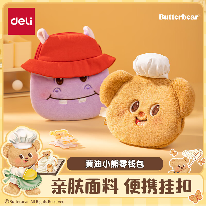 得力HY702黄油小熊毛绒痛层收纳包(棕)(个)