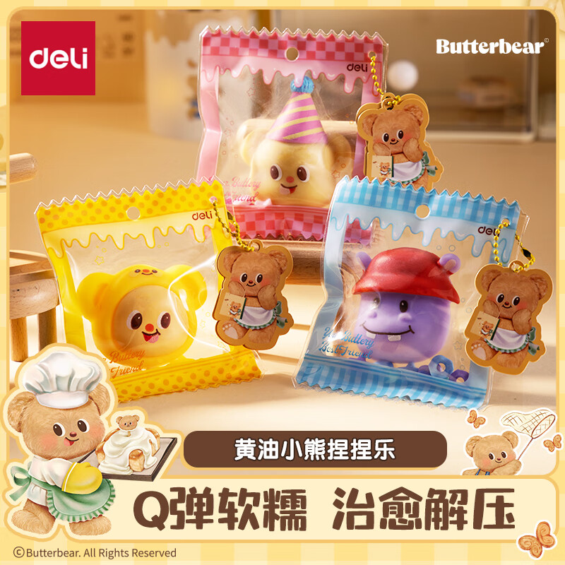 得力HY833黄油小熊-慢回弹解压玩具1个(混)(盒)