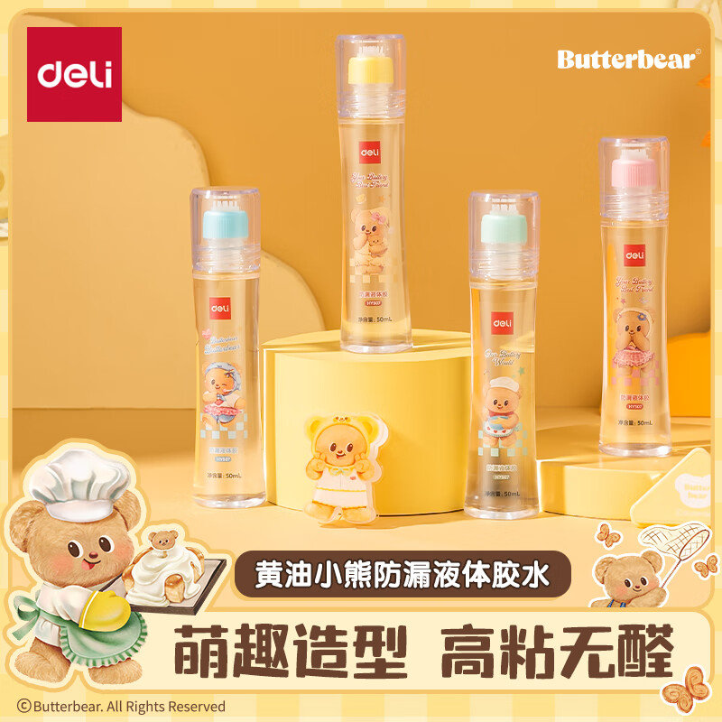 得力HY507黄油小熊防漏液体胶PVAL(50ml)(混)(瓶)