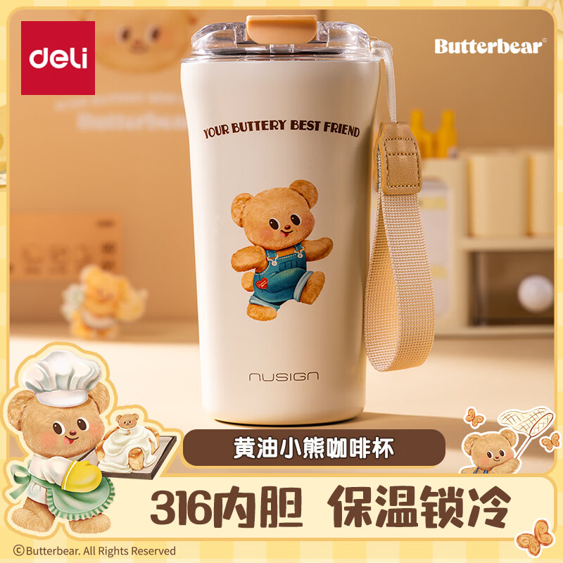 纽赛NS855-B黄油小熊直饮咖啡杯520mL_SUS316L(奶油白)(个)