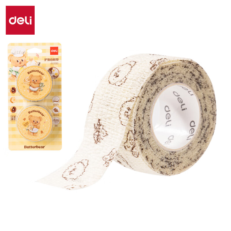 得力HY551黄油小熊系列护指自粘带25mm*4m*1mm(2卷/卡)