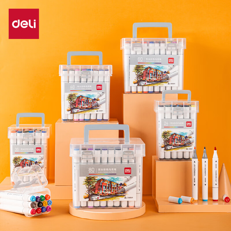 得力HY903-24_24色黄油小熊粗圆杆速干旋彩棒(混)(24色/桶)