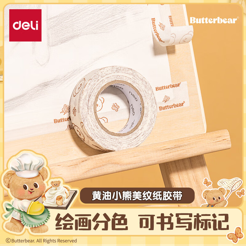 得力HY565黄油小熊美纹胶带15mm*20y*145um(白色)(袋)