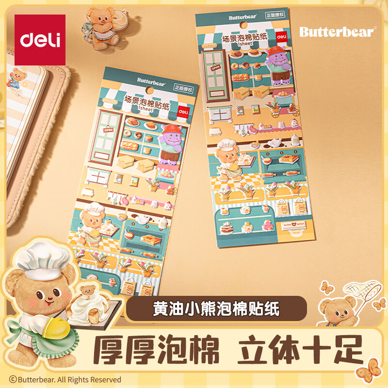 得力HY215场景泡棉贴纸(黄油小熊)(袋)