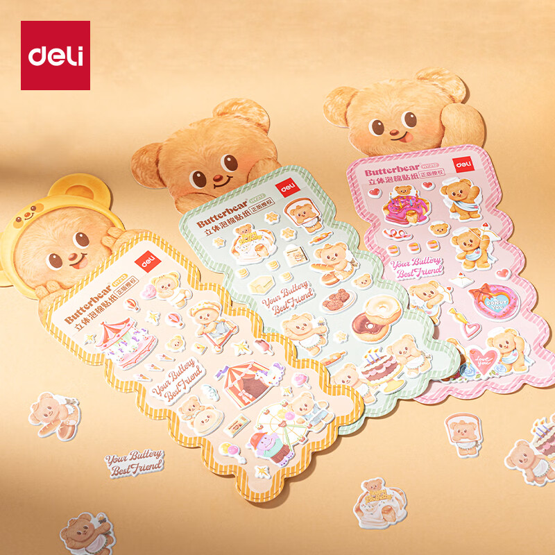 得力HY212立体泡棉贴纸(黄油小熊)(袋)