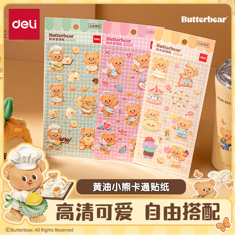 得力HY210卡通贴纸(黄油小熊)(袋)