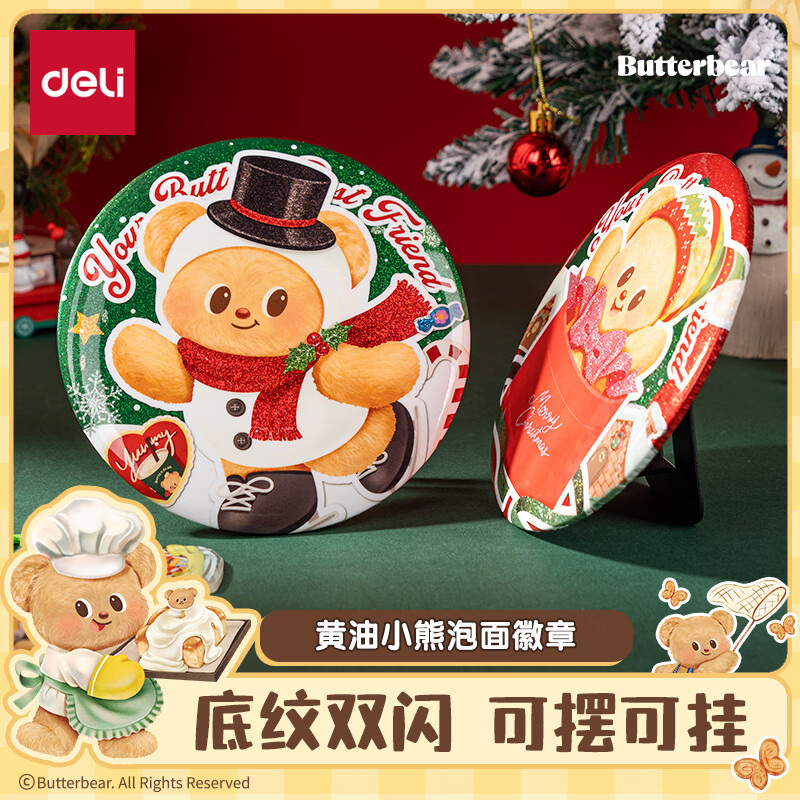 得力HY607黄油小熊圣诞系列泡面徽章(礼物小熊)(个)
